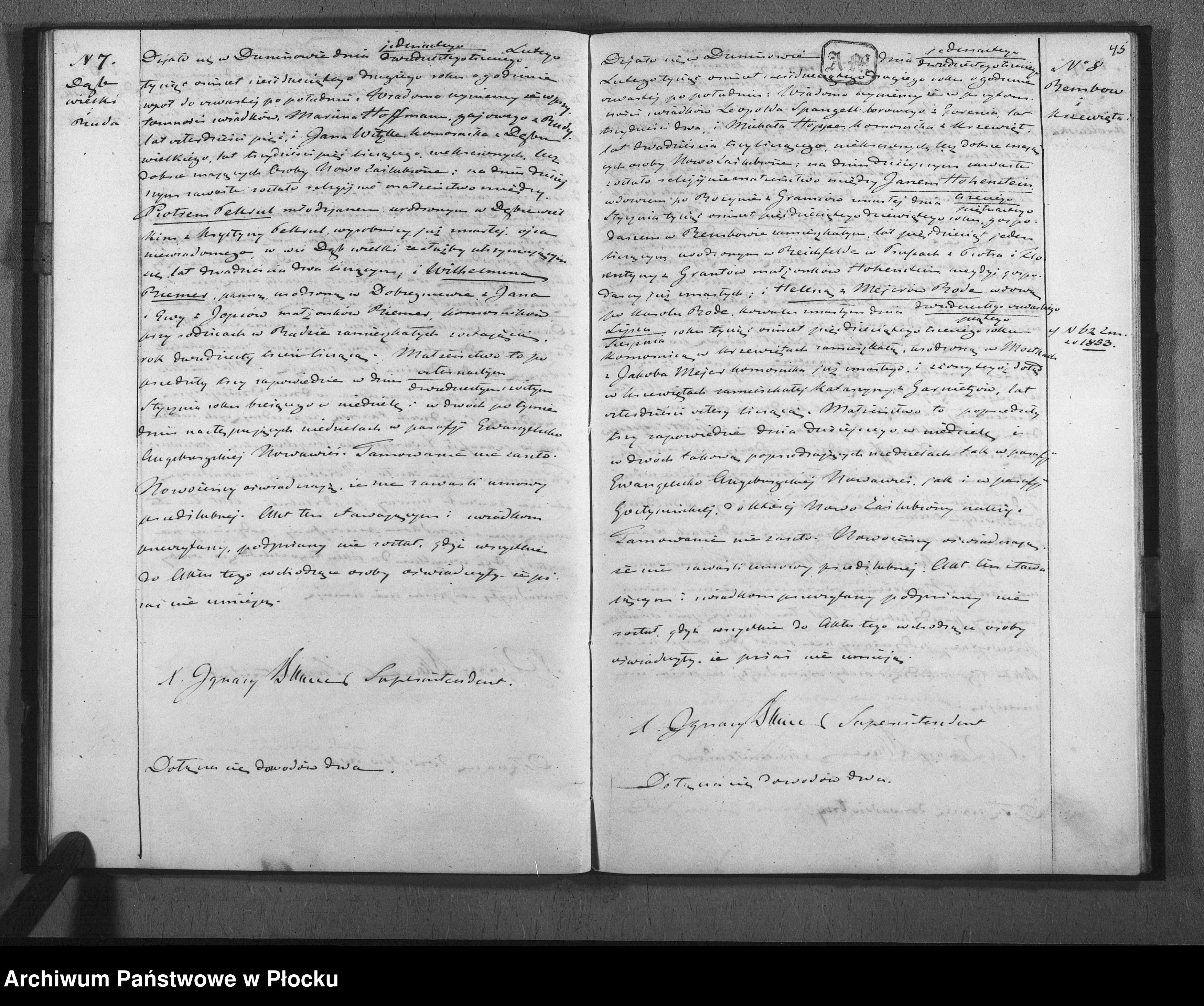 Jetzt noch die wichtigsten Angaben aus dem Heiratseintrag 1862, Nr. 8 (KB Nowa Wieś)